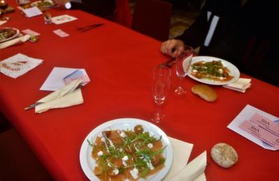 - VEGGIE : carpaccio van gekleurde tomaten, rucola, brood croutons, balsamico crème.
